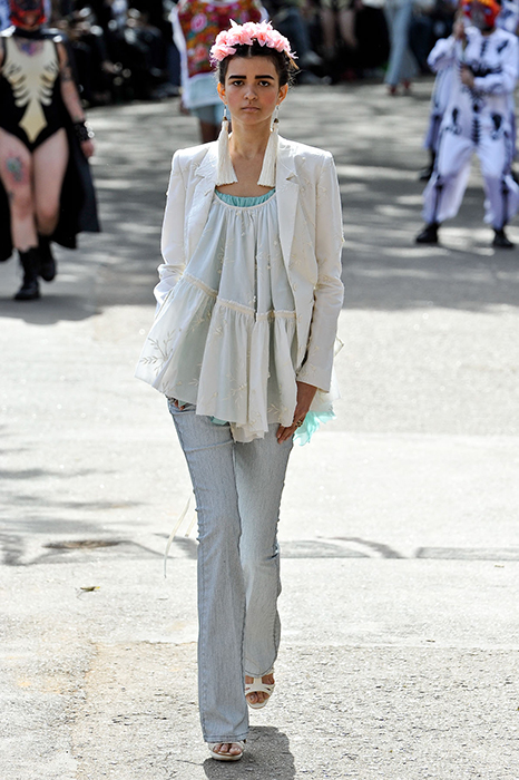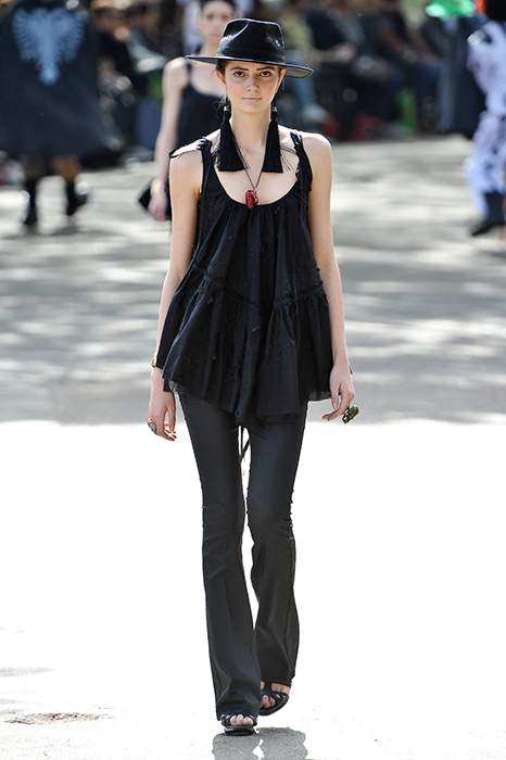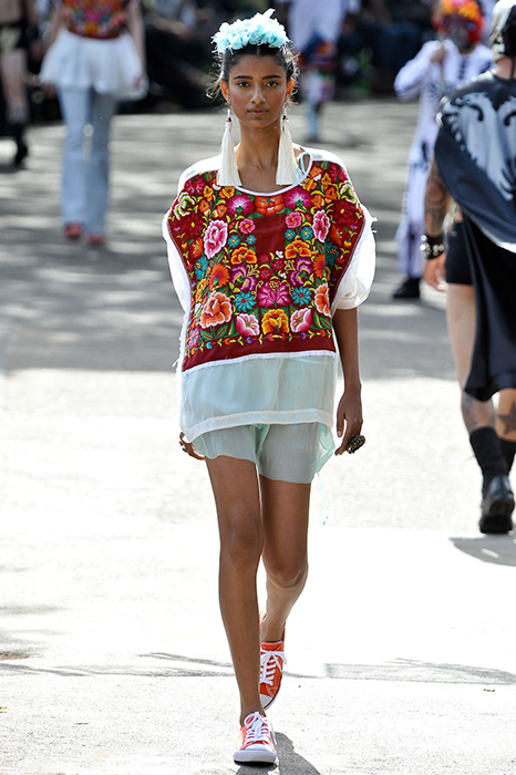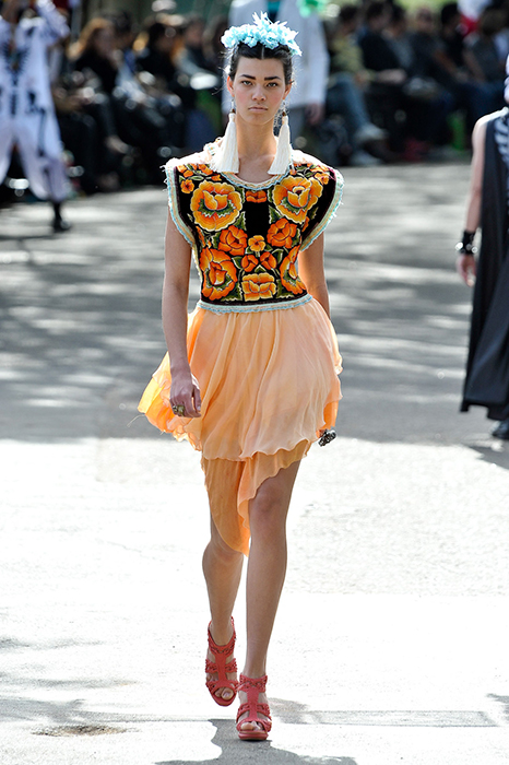 Con el auge de la era hippie de Janis Joplin, los pantalones de jeans femeninos aparecen en forma de bota campana. Bien justas en las piernas, ellas alargadas a la silueta. Los vestidos aparecen cortos, amplios y transparentes. Los bordados, típicos de la cultura mexicana, mixturas de lentejuelas, con bichos y flores de línea.