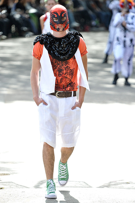 Los hombres de CAVALERA trajeron las camisetas estampadas de la marca, para el verano 2012, presentan imágenes de cráneos, iconos de cultura mexicana, mezclados con tradicionales figuras de rock. La adaptación fue inflexible y leve en tejidos rústicos y naturales pensado para el verano. El Zorro y los combatientes estaban en la fiesta.